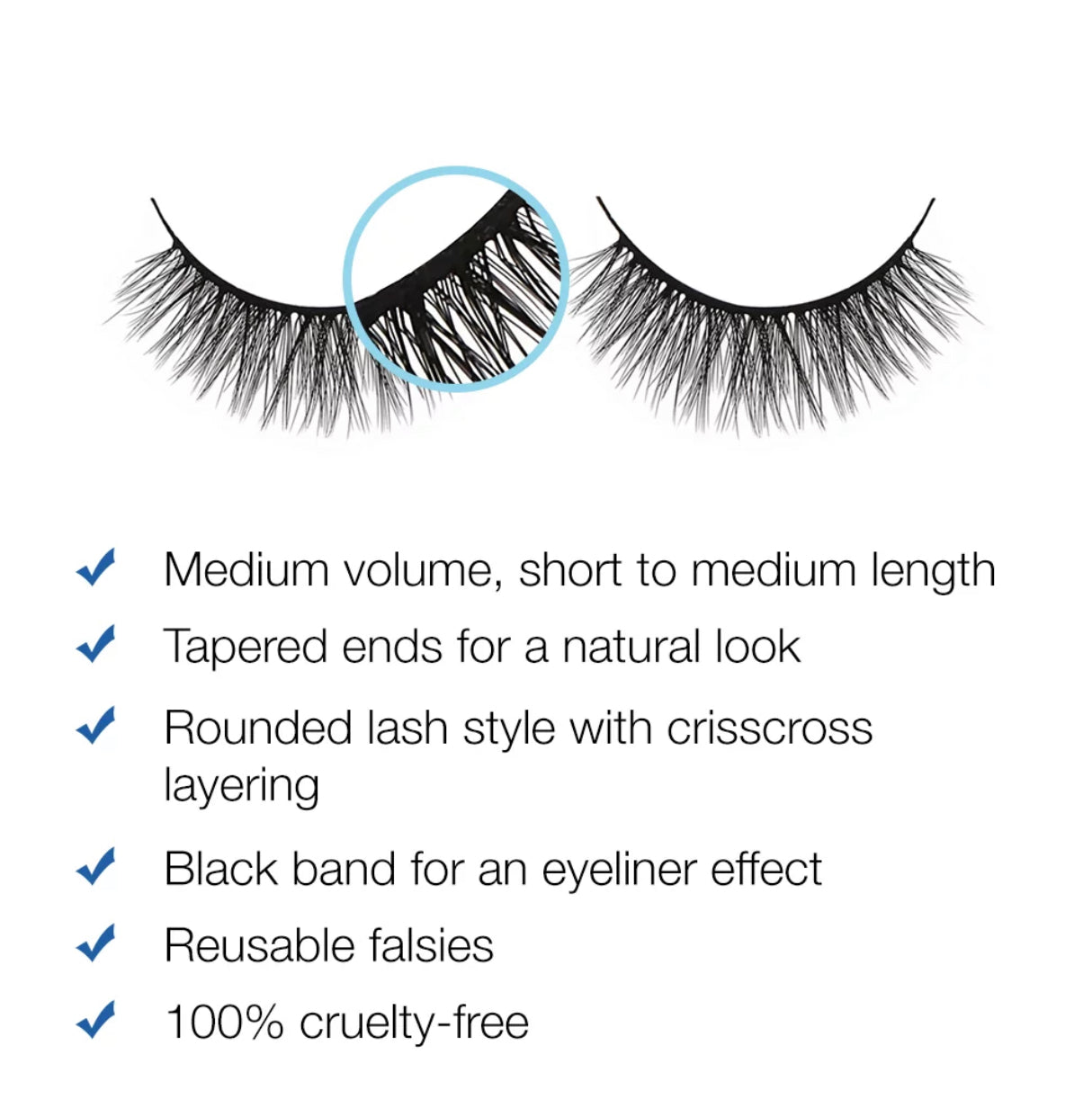 Aqua Lashes ™ te da unas pestañas deslumbrantes en segundos ... ¡sin pegamento! Gracias a una banda activada por agua pendiente de patente, no se necesita adhesivo adicional. 3 sencillos pasos: recortar a medida, sumergir en agua y aplicar. Ideal para principiantes o cualquier persona con prisa. Las fibras finas y suaves se combinan con tus propias pestañas. La banda negra crea un efecto de delineador que define los ojos. Elija entre una variedad de formas, volúmenes y longitudes para todos los días. Aqua Lashes ™. Sin cinta. Sin pegamento. Sin complicaciones. Volumen medio, longitud corta La forma redondeada es más larga en el centro, más corta en las esquinas para abrir los ojos. Pestañas llenas y coquetas para atrapar miradas Fibras cónicas, finas y suaves Banda de pestañas activada por agua, no se necesita adhesivo La banda negra proporciona un efecto delineador de ojos. Negro