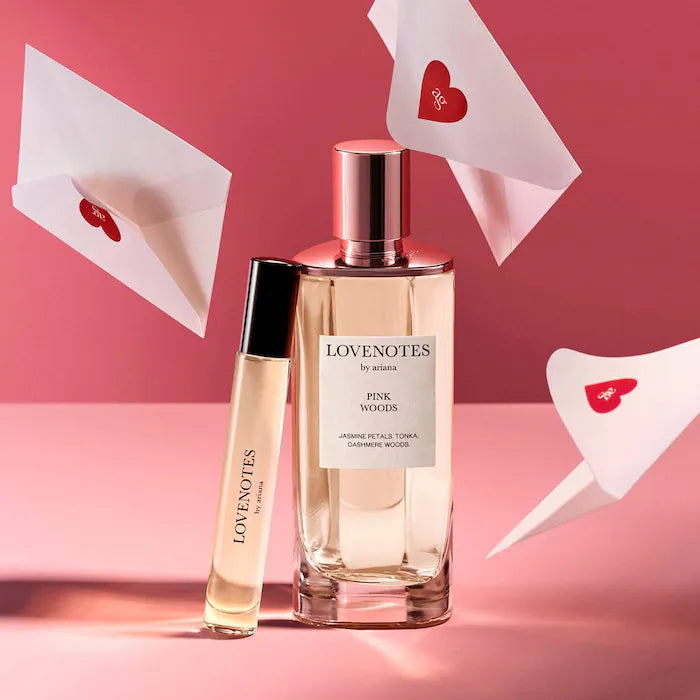 LOVENOTES Pink Woods es cautivador e instantáneamente atractivo. Esta fragancia comienza con notas brillantes de bergamota italiana envueltas en seductor vetiver y flor de loto. Una mezcla de haba tonka y maderas de cachemira brilla, creando una firma inesperada e inolvidable.