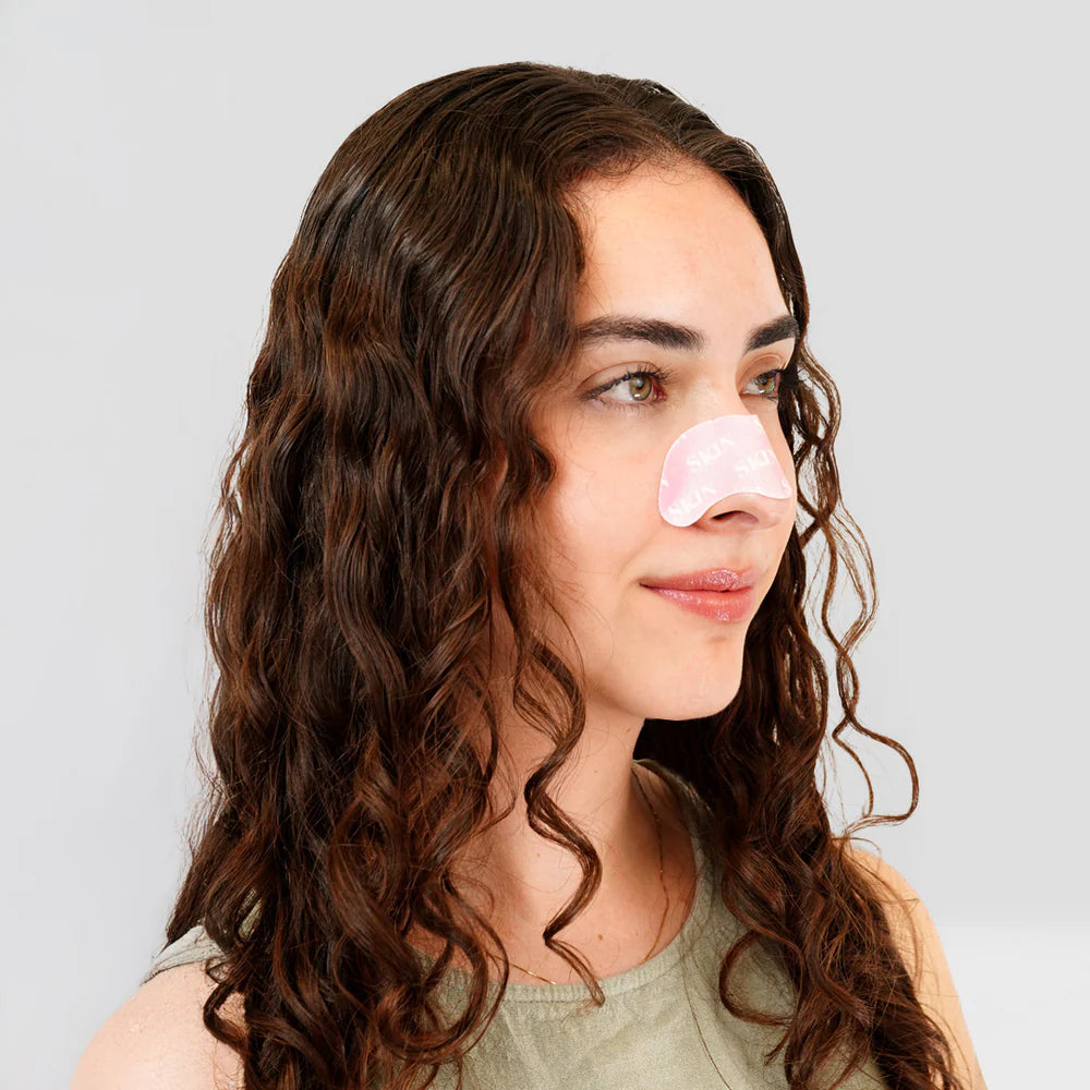 - Comenzando con una nariz limpia, humedeza bien la nariz y aplique una tira sobre la piel.