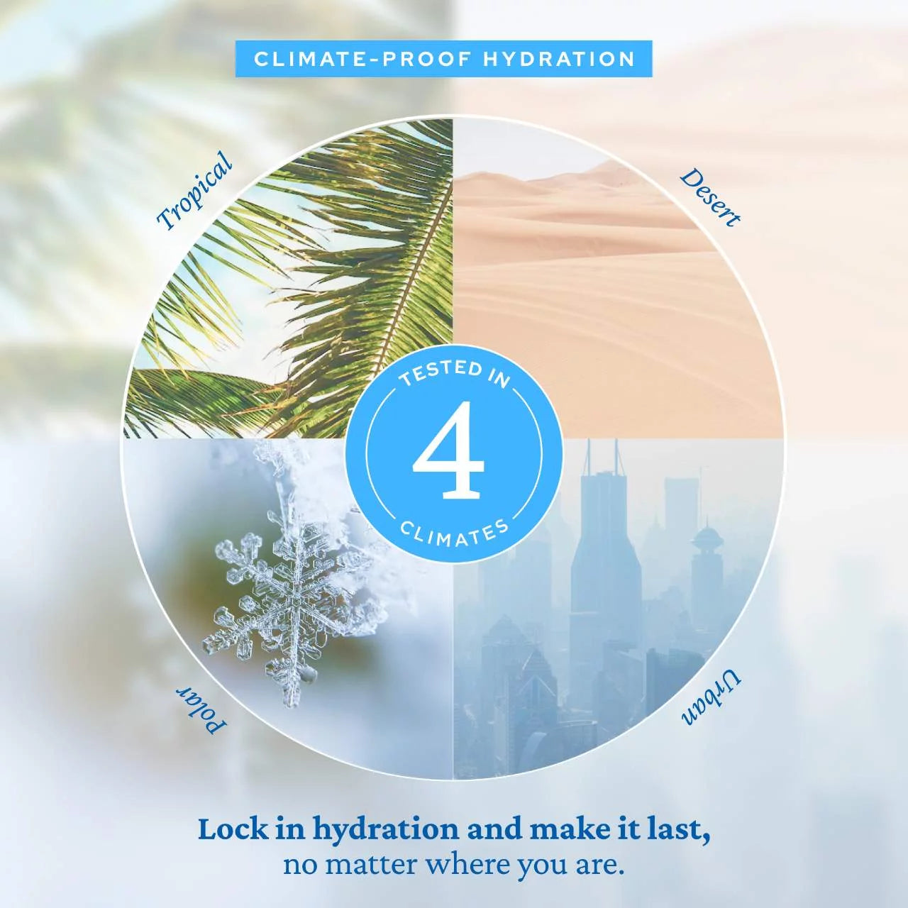 Un conjunto con la crema hidratante más vendida que está probada para el clima para ofrecer una hidratación duradera para un brillo radiante dondequiera que vayas.