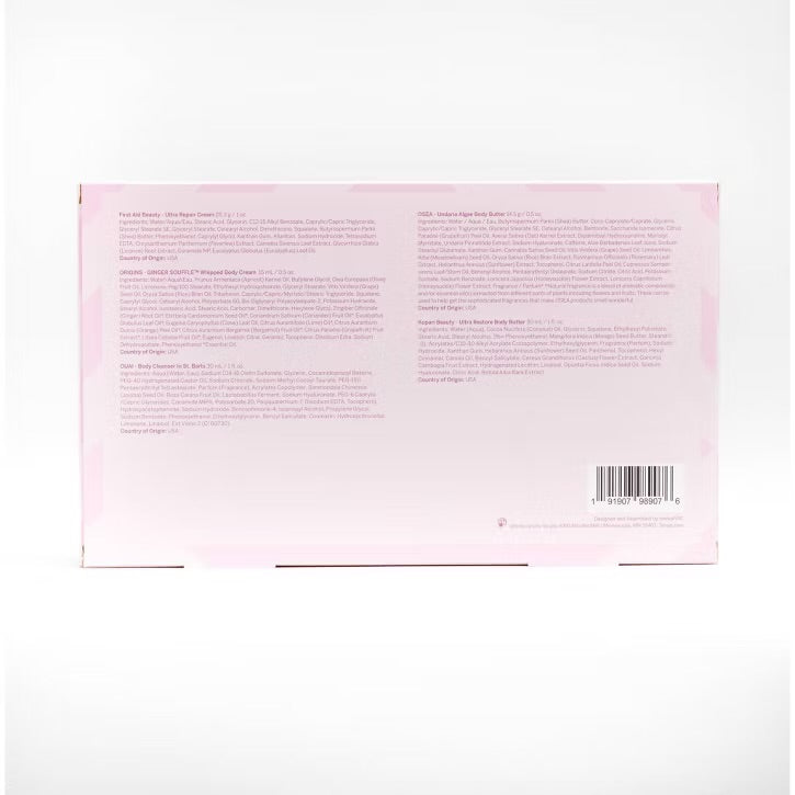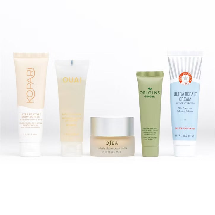 Cuando llegue el clima frío, disfrute de rutinas reconfortantes. Con un valor de 40 $, este set de cuidado corporal de 5 piezas está lleno de codiciadas cremas corporales y mantequillas para hidratar su piel. Incluye favoritos de First Aid Beauty, Kopari, Origins, OSEA y OUAI.