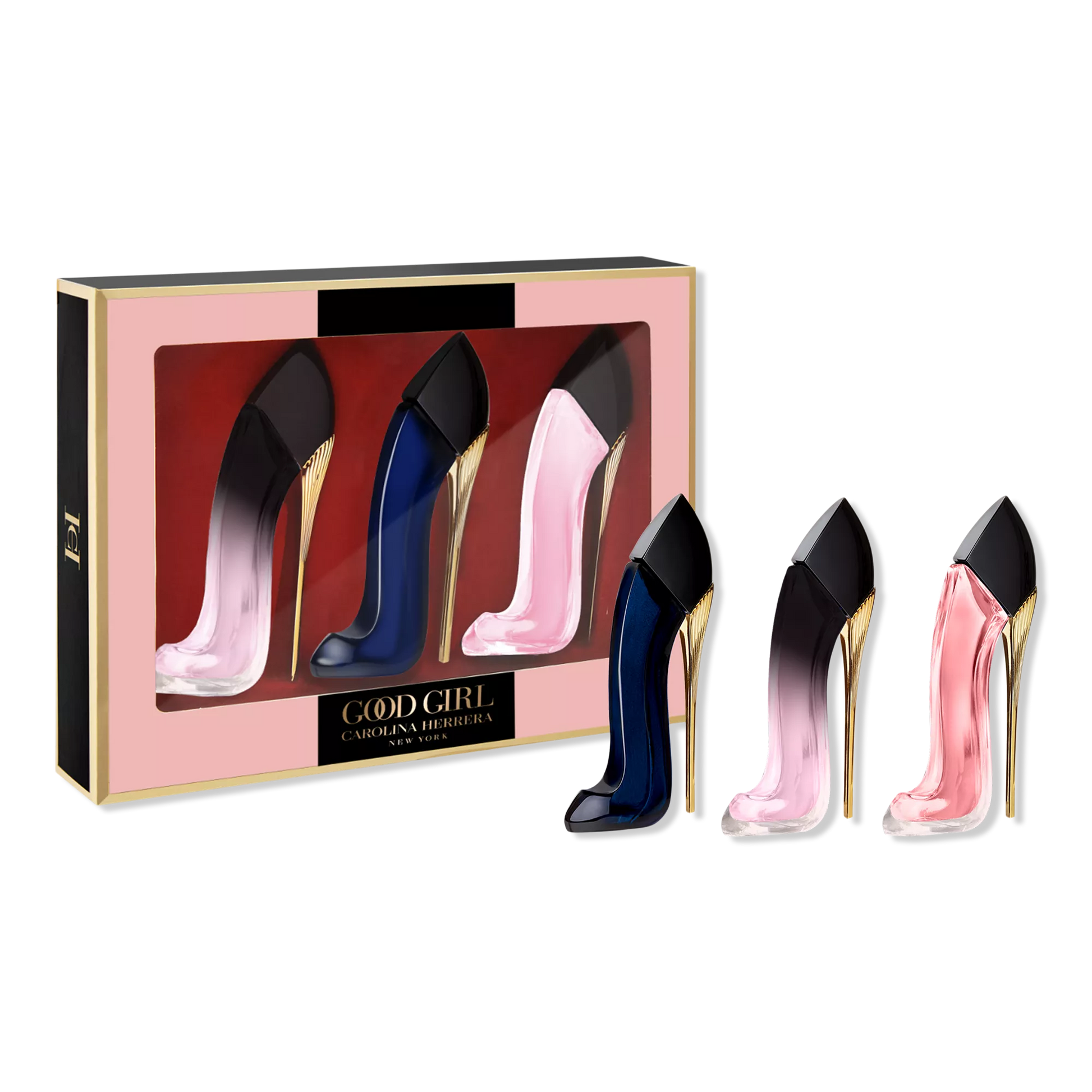 El regalo perfecto para cualquier fan de Good Girl, esta colección de miniaturas incluye Good Girl Blush Elixir, Good Girl Eau de Parfum y Good Girl Blush Eau de Parfum. Las fragancias de Good Girl son aromas atrevidos pero sofisticados inspirados en la visión única de Carolina de la dualidad de la mujer moderna.