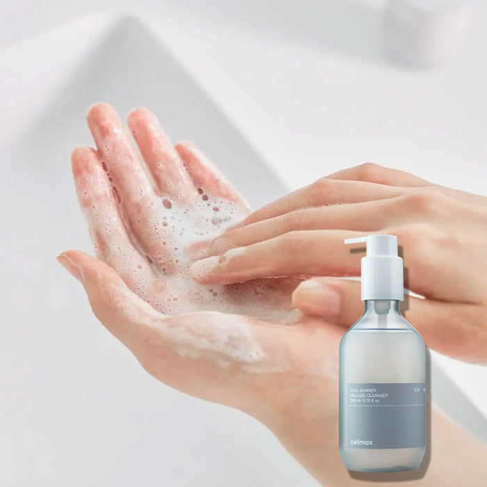 El limpiador de gel suave de doble barrera de Celimax es un lavado facial suave y de bajo pH que fortalece la barrera saludable de la piel y elimina eficazmente el exceso de sebo y las impurezas.