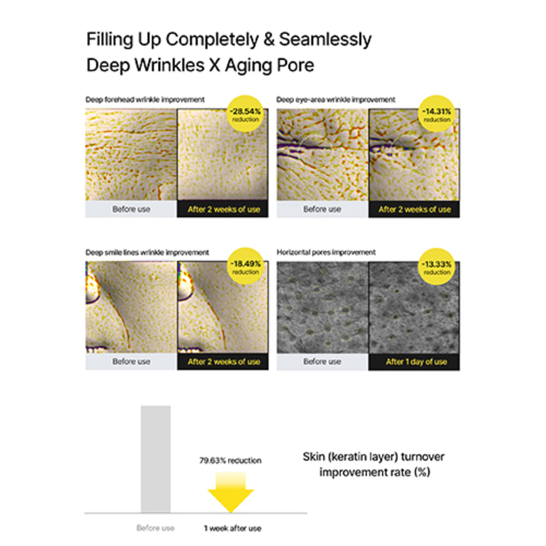 Un nivel más alto de vitamina A, 5 veces más pequeño que los poros 0,1% de retina de tamaño nano - Formulando una alta concentración de 0,1% de retina de tamaño nanométrico, 5 veces más pequeño que los poros y estabilizado por la tecnología de liposomas, ayudando a un cuidado interno más efectivo de la elasticidad
