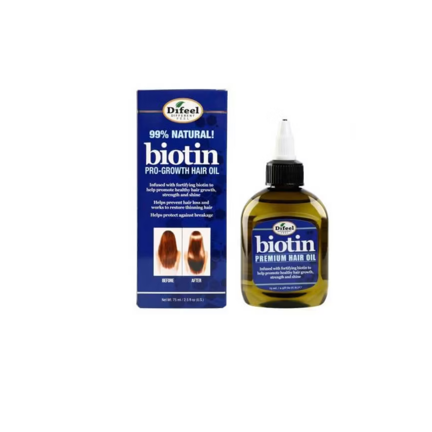 Aceite capilar de biotina Difeel Premium 2,5 oz - La biotina juega un papel importante en la salud de su cabello, piel y uñas. La falta de biotina puede provocar la pérdida de cabello. Los productos Pro-Crecimiento de Difeel son fórmulas fortificadas y fortalecedas infundidas con biotina, una vitamina soluble en agua que forma parte de la familia de la vitamina B. Nuestros productos pro-crecimiento no contienen sulfatos, parabenos ni ftalatos. Funcionan para mantener el color de tu cabello vibrante mientras le dan a tu cabello mayor manejabilidad, suavidad y brillo.