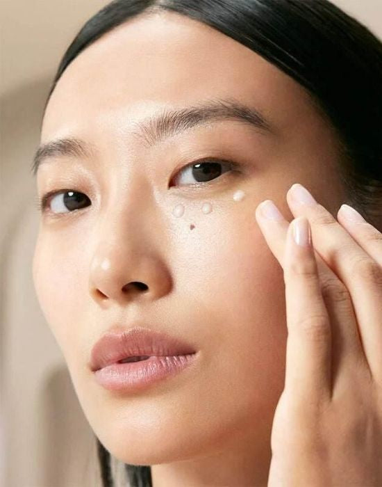 Aplica una pequeña cantidad en el contorno de ojos y da suaves toques con las yemas de los dedos hasta que se absorba.