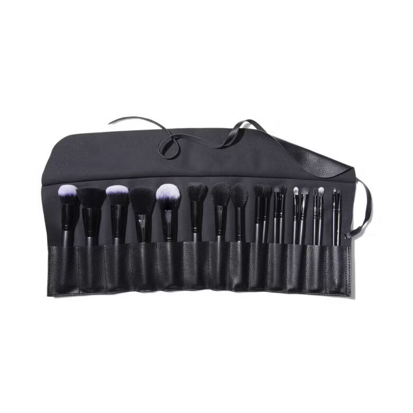 Nuestra colección de brochas de maquillaje de 19 piezas imprescindibles ayuda a crear una amplia gama de looks magníficos. Estos cepillos aptos para veganos se pueden usar con productos húmedos o secos. El estuche de viaje con rollo de brocha de maquillaje ofrece comodidad para llevar.