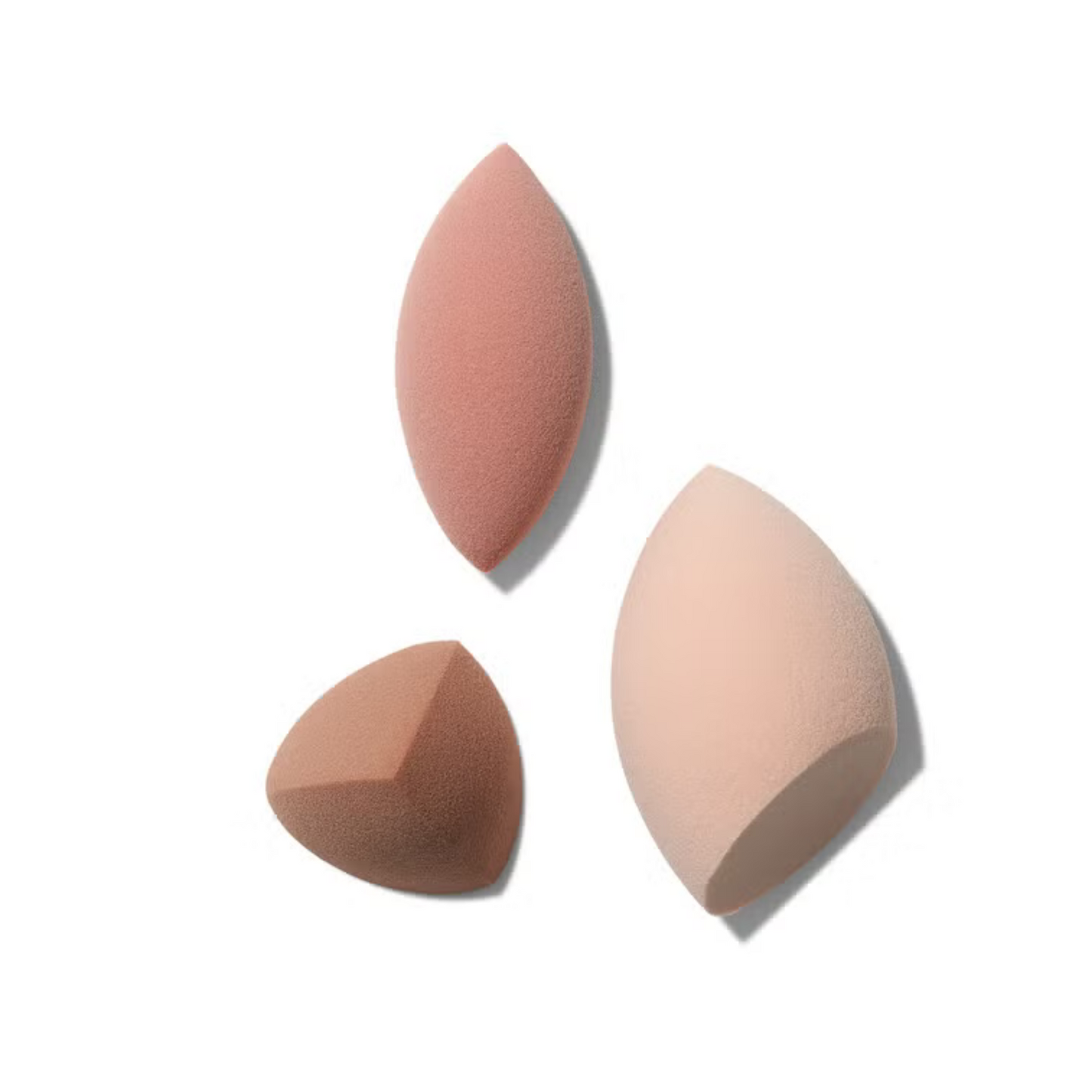 Un juego de esponjas de maquillaje con 2 de nuestras esponjas más vendidas y 1 nueva esponja exclusiva en formas únicas para aplicar y mezclar impecablemente sus productos de maquillaje facial favoritos.