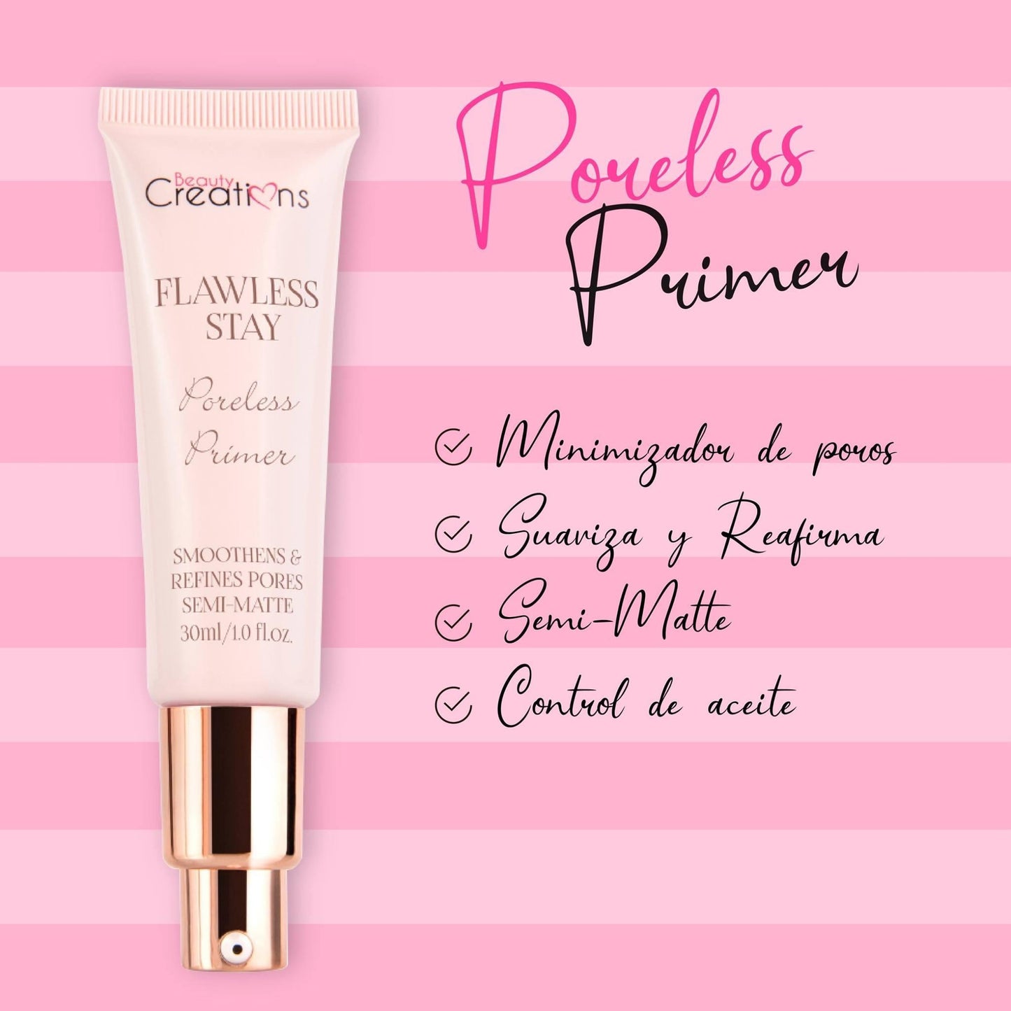 El Primer Poreless de la colección Flawless Stay de Beauty Creations te ayudará a crear el lienzo perfecto minimizando los poros, mientras le da a la piel un efecto semi mate controlando el brillo del rostro. Libre de sulfatos y parabenos.