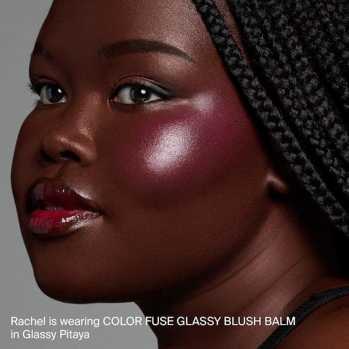 - 1 x .18 oz/ 5g Full Sized Color Fuse Glassy Blush Balm en Glassy Pitaya (rosa frío)