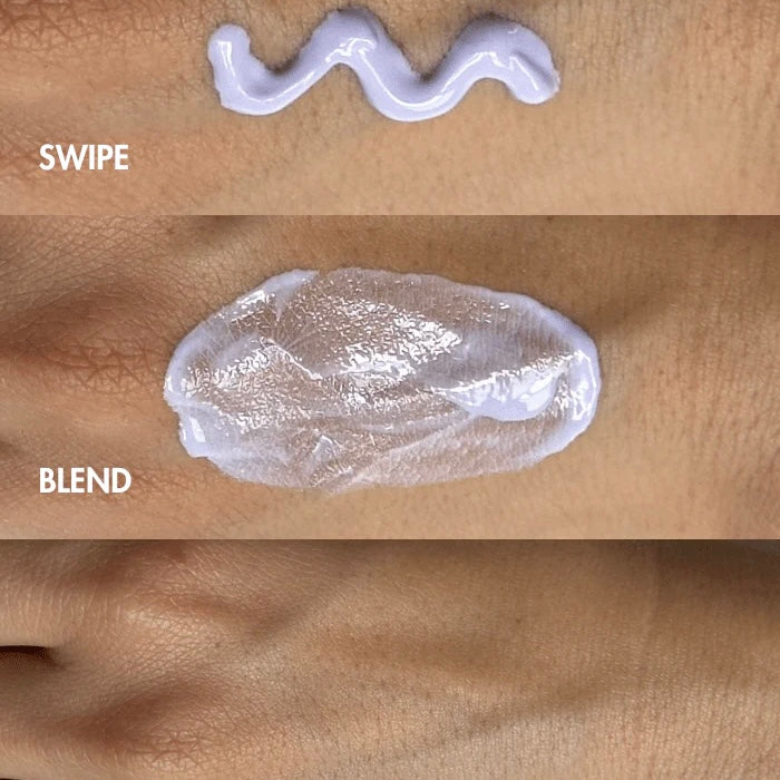 - Efecto corrector de tono: La textura cremosa de color púrpura funciona para neutralizar la decoloración amarilla en la piel, lo que resulta en un acabado más radiante y uniforme sin un tono blanco.
