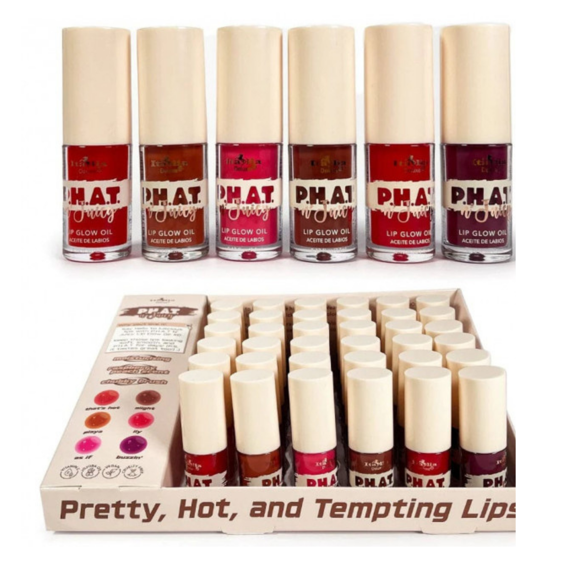 Italia Deluxe - Display P.H.A.T Juicy Lip Glow Oil (36 piezas)