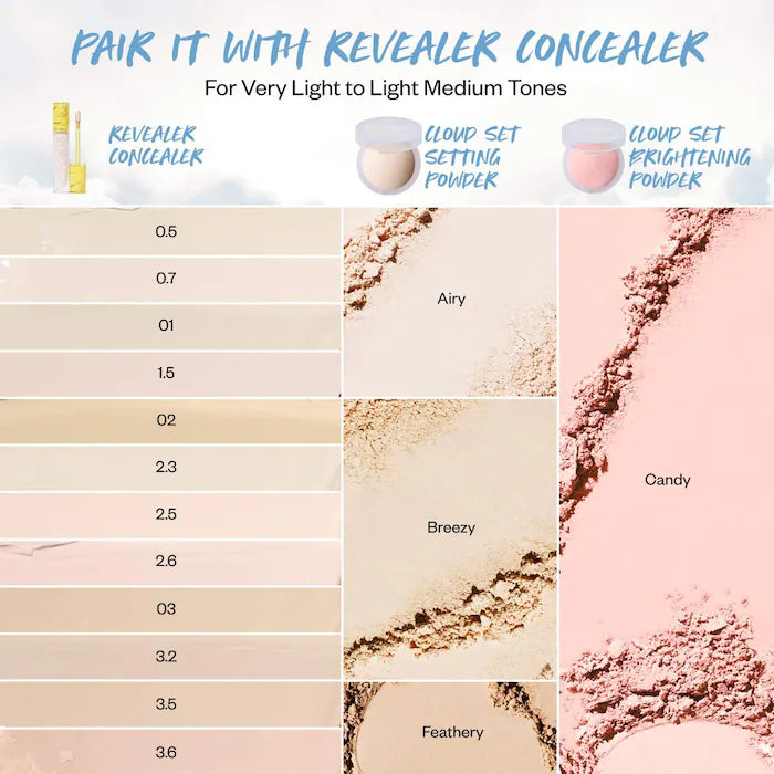 Resultados clínicos: Basado en un estudio de consumidores de 20 mujeres que usaron aceite facial tintado, corrector revelador y Cloud Set durante 1 semana: