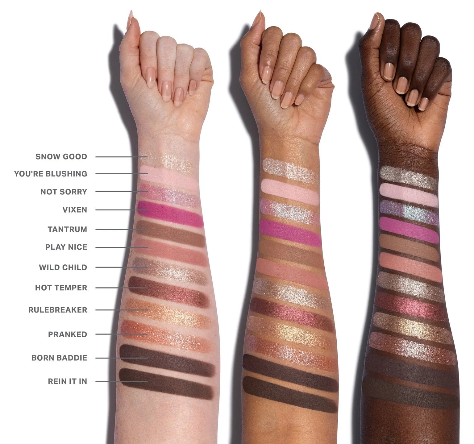 Dale vida a The Naughty List con una selección de 12 sensuales neutros en tonos rosados y toques juguetones de rosa. Desde mates suaves hasta metálicos deslumbrantes, además de nuevas sombras brillantes que ofrecen un brillo reflectante y húmedo, esta paleta es tu compañera perfecta para la temporada de fiestas en el crimen.