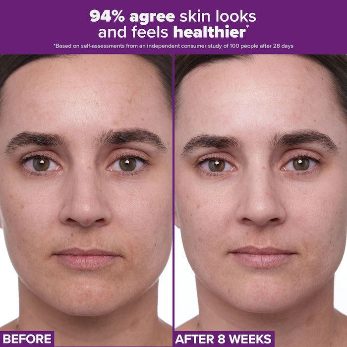 Este retinol avanzado al 1% cuenta con una potente mezcla de cuatro péptidos y vitamina C para ayudar a que la piel se vea y se sienta más joven. La fórmula transparente y ligera mejora visiblemente la resistencia de la piel, suaviza las líneas y arrugas, minimiza los poros y desvanece el aspecto de la decoloración con el tiempo.