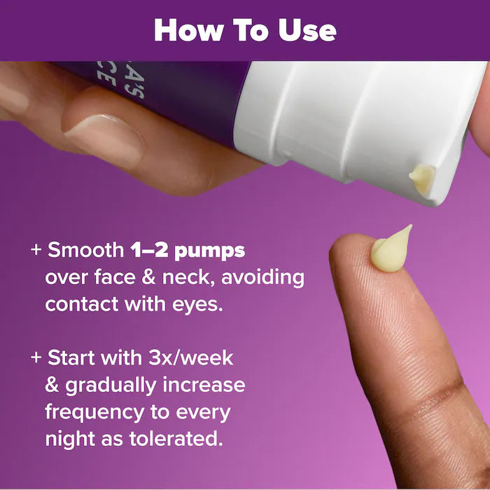- Triple Peptide Blend: Complementa el retinol de alta resistencia, promoviendo una piel fuerte y visiblemente firme.