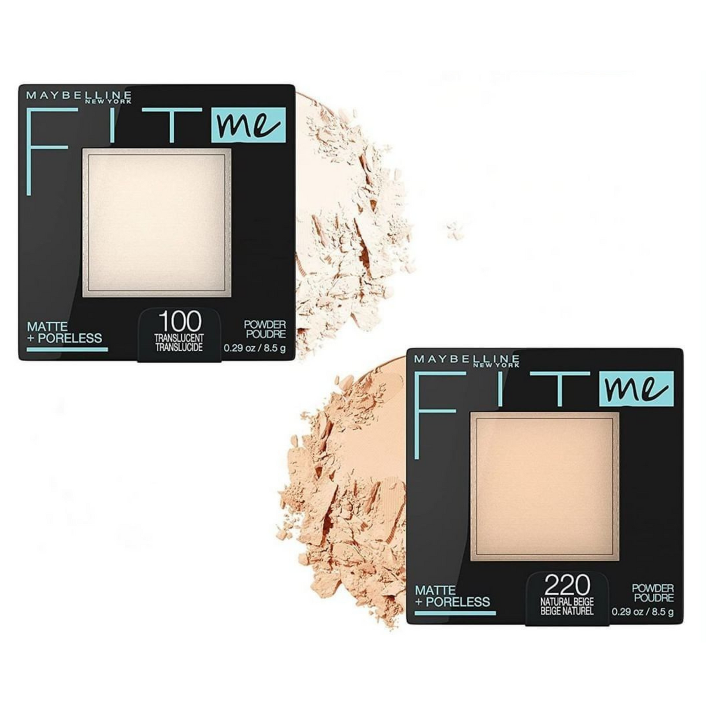 - Un tono que me queda bien: el polvo de acabado mate Maybelline Fit Me proporciona cobertura para una amplia gama de tonos de piel, desde marfil hasta moca. Úselo como polvo fijador o para controlar el brillo para un acabado impecable y de aspecto natural