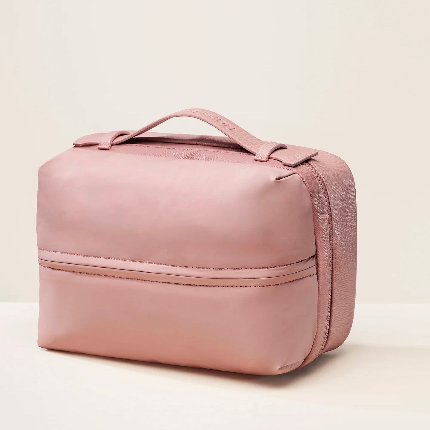 Un neceser espacioso de doble capa para organizar todo tu maquillaje favorito y golosinas de viaje (y algo más) sobre la marcha ahora en nuestro malva Find Comfort.