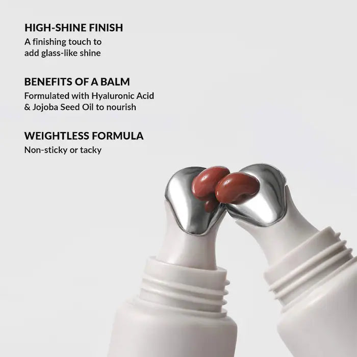 Un dúo de mini brillos de labios de alto brillo y no pegajosos en tonos Clear y rosewood.