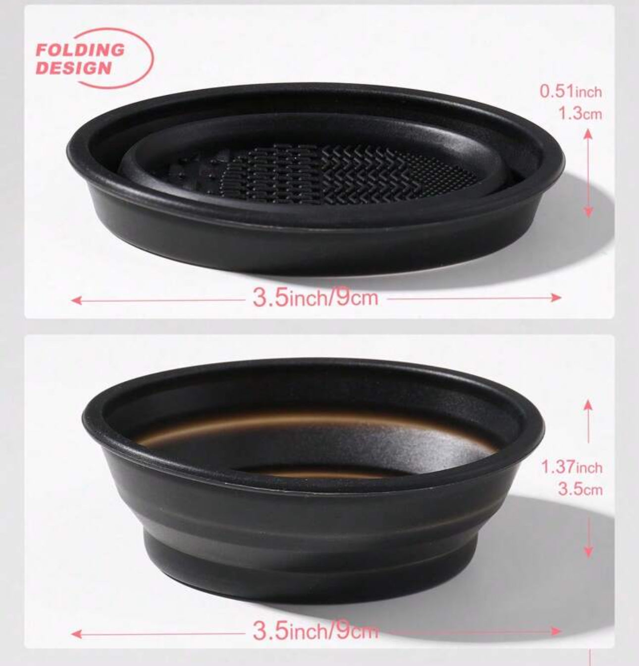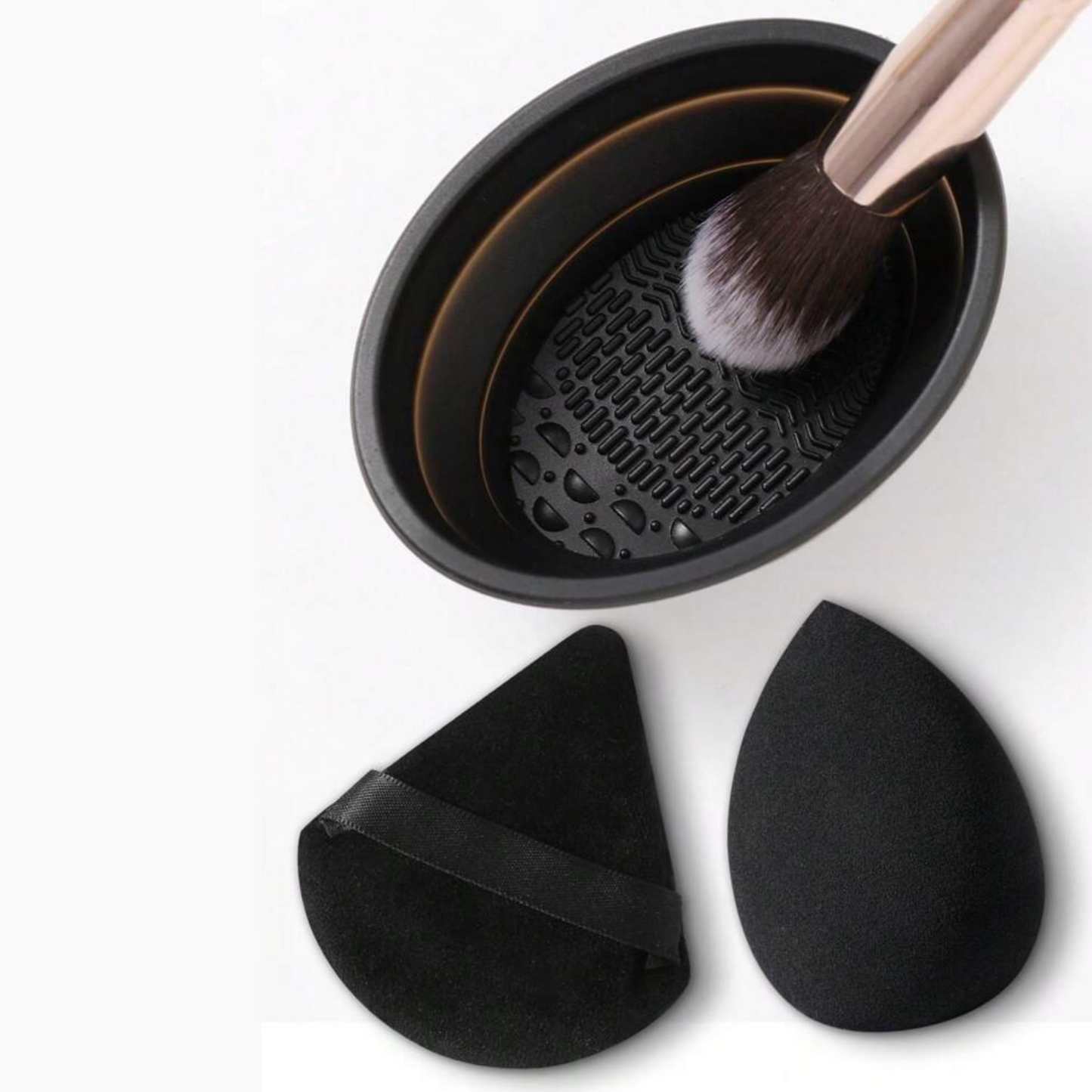 1 Esponja de maquillaje + 1 Borla de polvo triangular + 1 Tazón plegable limpiador de brochas de silicona - Herramienta de limpieza portátil Etercycle para brochas, borlas de polvo y esponjas