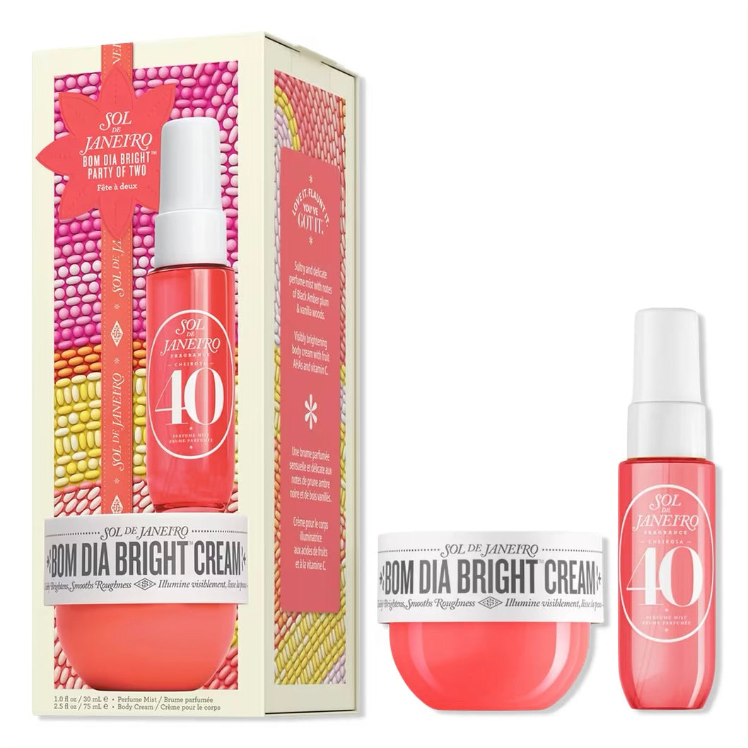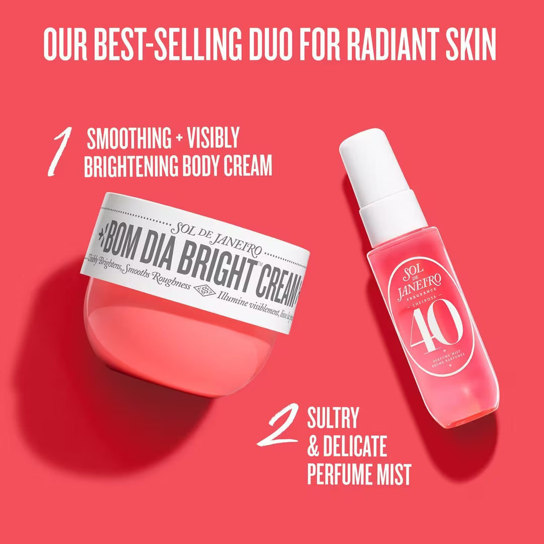 Hola, resplandor. Este dúo de edición limitada, apto para viajes incluye la crema corporal Bom Dia Bright™ suavizante y visiblemente iluminadora y la suave y cálida floral Cheirosa 40 Perfume Mist con notas de maderas de ciruela y vainilla de ámbar negro.