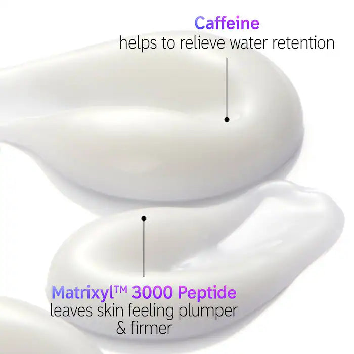 Una crema de ojos ligera e hidratante con una mezcla de cafeína y péptidos, clínicamente probada para reducir la aparición de hinchazón y ojeras.
