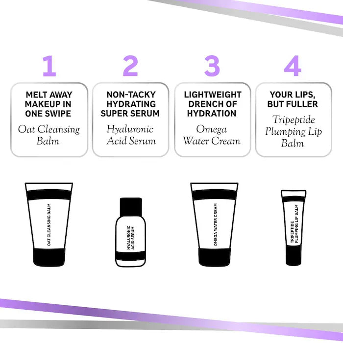 Una rutina esencial de cuatro pasos adecuada para todo tipo de piel para potenciar la hidratación y comenzar su viaje hacia su piel de aspecto más saludable.