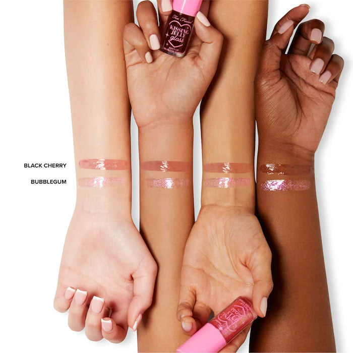 Qué es: Un conjunto de dos brillos de aceite labial Kissing Jelly de tamaño completo en los tonos Bubblegum y el nuevo y exclusivo Black Cherry.